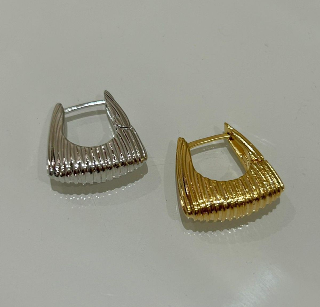Brinco argola click ranhurada linhas banhado em ródio branco M