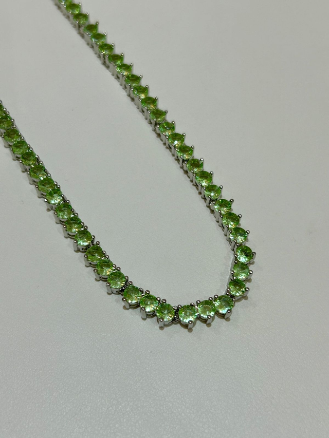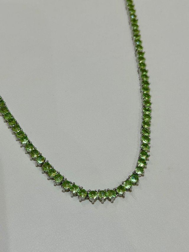 COLAR RIVIERA 3 PONTAS 4MM ZIRCÔNIAS AAA BANHADO EM RÓDIO BRANCO MAÇA VERDE