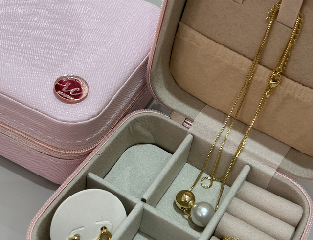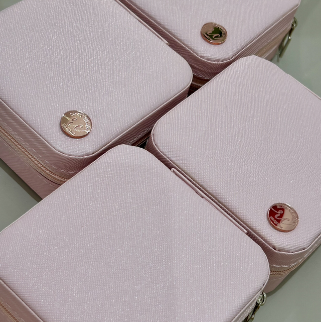 PORTA JOIAS DE BOLSA PARA VIAGEM - TAM P - PERSONALIZADO ROSA CEREJA