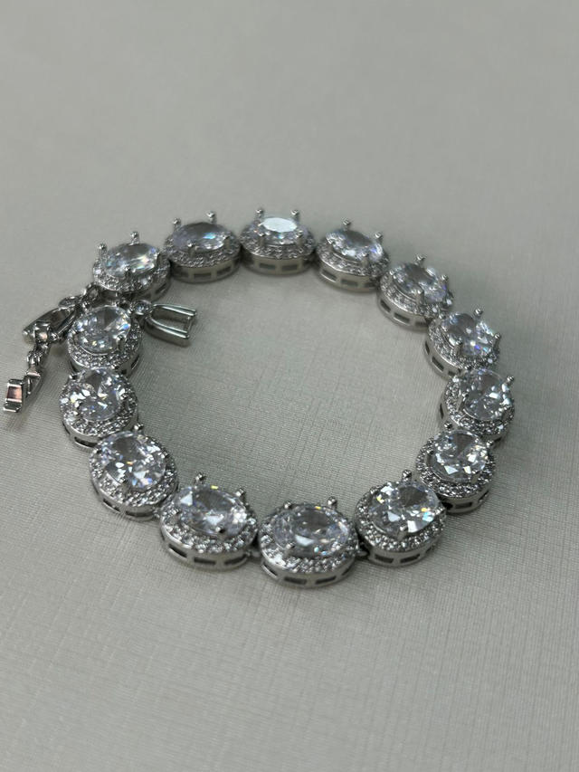 PULSEIRA FECHO JOIA BANHADO EM RÓDIO BRANCO COM PEDRAS OVAIS CRAVEJADO